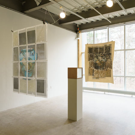Fragmented Surfaces utilize fabric image transfer techniques and continuous images in the box to create repetitive and fragmented scenes from the different three-dimensional surfaces. These three planes combined as one spatial photography installation.